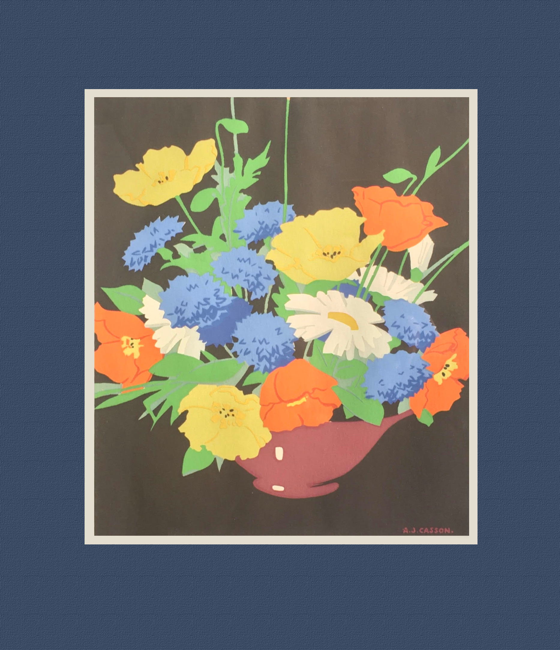 Casson studied art in Hamilton Technical School in 1913, and with Alfred Howell and Harry Britton at Central Technical School in Toronto (1915-1917). He apprenticed with the artist Frank Carmichael at Rous & Mann in 1919, following him to Sampson & Matthews in 1927. Through Carmichael, Casson met his mentors, the Group of Seven, at Toronto's Arts and Letters Club. He later sought to escape their influence. Casson's design career was crucial to his art. An accomplished calligrapher, he excelled in streamlined design, loved pattern, and developed an exceptional visual memory. Casson co-founded the Canadian Society of Painters in Watercolour in 1926. He promoted Canadian art through his commercial work and arts organizations, instigating the WWII war artists program. He visited Britain in 1961.